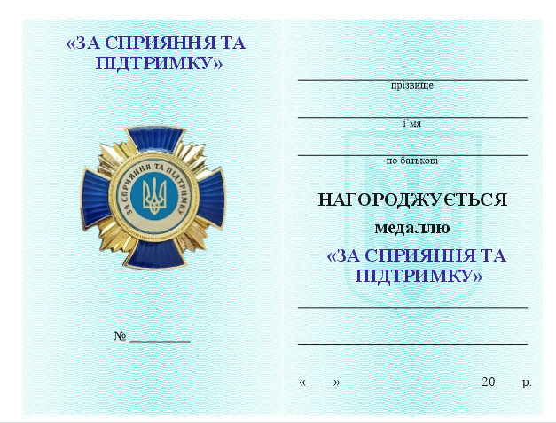 Відзнака "За сприяння та підтримку" — це почесний знак вдячності, який вручається особам, організаціям або представникам бізнесу за активну допомогу