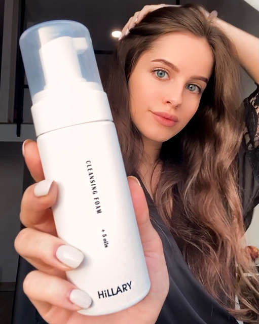 Використайте для вмивання невелику кількість очищуючої пінки Hillary Cleansing Foam + 5 oils. Нанесіть її на вологе обличчя легкими масажними рухами, ретельно сполосніть обличчя водою;