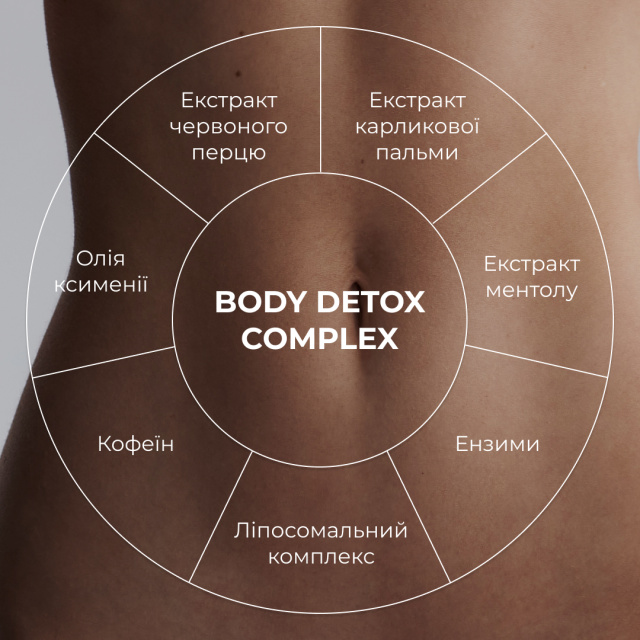 Екстракт карликової пальми регулює обмін ліпідів і стимулює синтез колагену, що сприяє підвищенню пружності шкіри. Олія ксименії глибоко живить, покращує мікроциркуляцію та сприяє регенерації, надаючи шкірі більш здоровий і доглянутий вигляд. Ліпосомальний комплекс LPDS Slimming активує процес розщеплення жирових відкладень, а ензими Zymo Cell сприяють оновленню клітин та вирівнюванню рельєфу шкіри. Кофеїн діє як потужний стимулятор кровообігу, підвищує тонус і сприяє виведенню зайвої рідини, що допомагає зменшити набряклість. Для інтенсивного локального впливу екстракт червоного перцю забезпечує розігріваючий ефект, підсилюючи проникнення активних компонентів у глибокі шари шкіри, тоді як екстракт ментолу освіжає, знімає набряклість і додає тонусу.