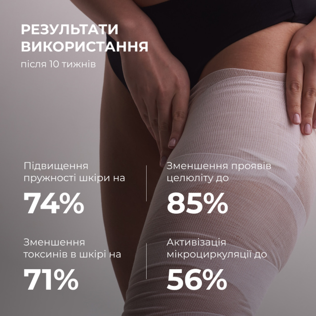 Результати використання обгортань демонструють значне покращення пружності шкіри, яке збільшилось на 74%. Спостерігалось зменшення проявів целюліту до 85%, що підтверджує їх ефективність у покращенні текстури шкіри. Обгортання допомогли активізувати мікроциркуляцію на 56%, що сприяло кращому кровообігу та лімфодренажу. В результаті цього, токсини в шкірі зменшились на 71%, що сприяло детоксикації та загальному оздоровленню шкіри.