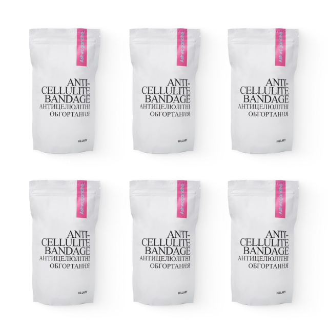 - Антицелюлітні моделюючі обгортання для тіла з екстрактом ашваганди Hillary Ashwagandha Hot Slim, (6 упаковок)