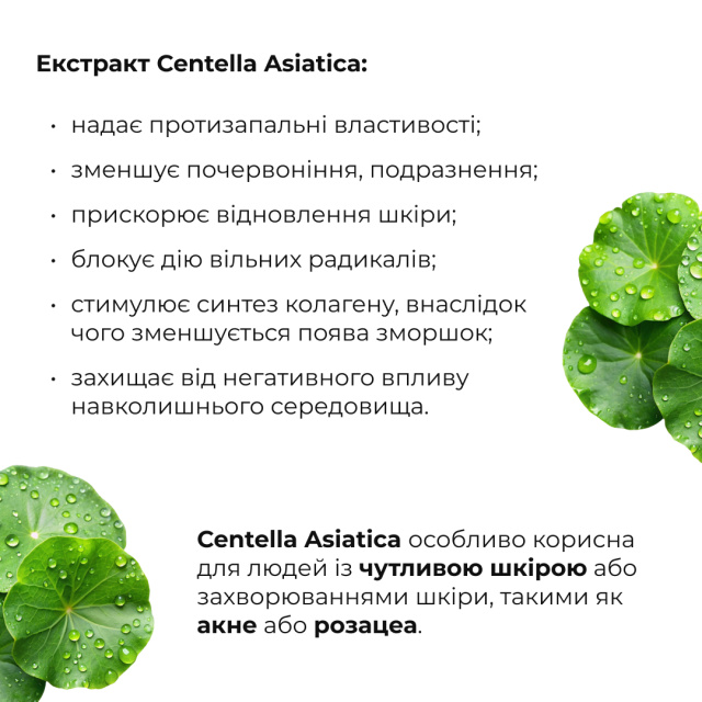 Centella Asiatica – ідеальний компонент для втомленої, реактивної або пошкодженої шкіри, яка потребує делікатного підходу.