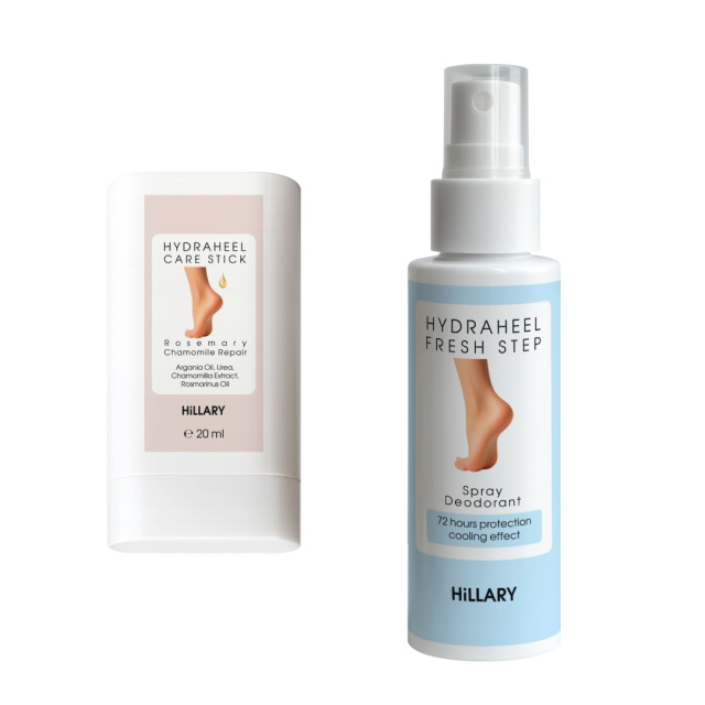 Набір, що сприяє зменшенню потовиділення та усуненню неприємного запаху, бореться проти тріщин, сухості та лущення. Після 1 тижня регулярного застосування спрею Hillary HydraHeel FreshStep, спостерігалось зниження пітливості на 68%. Зафіксовано, що спрей знижує неприємний запах на 96% протягом 48 годин після нанесення.