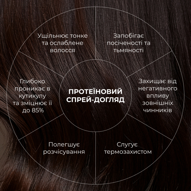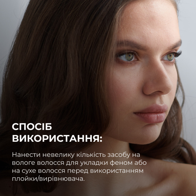 3. Протеїновий спрей-догляд. Невелику кількість засобу нанести на вологе волосся по всій довжині, висушити феном чи виконати укладку. Або на сухе волосся перед використанням плойки вирівнювача для волосся.