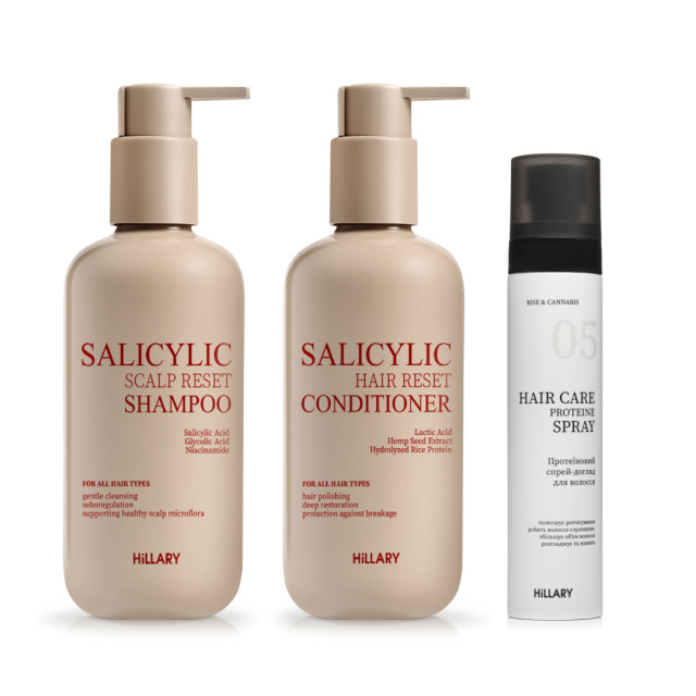 Набір для відновлення волосся та шкіри голови з саліциловою кислотою і протеїновим доглядом Hillary Salicylic Hair & Scalp Renewal Set with Protein, Київ