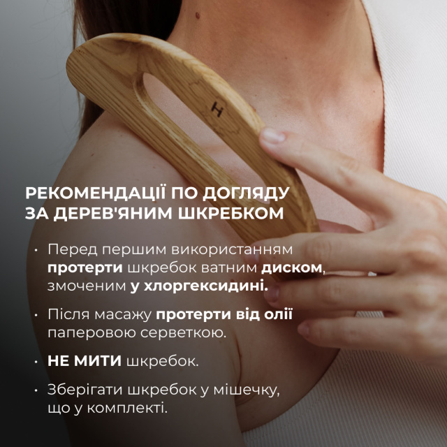 - Після процедури масажу протріть шкребок від залишків олії паперовою серветкою.