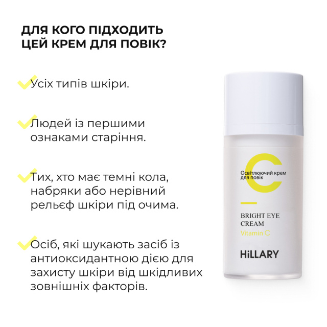 - Освітлюючий крем для повік з вітаміном C Hillary Vitamin C Bright Eye Cream, 15 мл