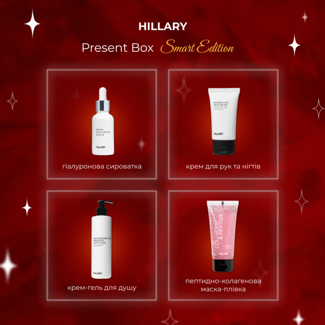 Hillary Present Box Smart Edition – це ваш особистий ритуал відновлення й натхнення. Він допомагає зупинитися, відчути спокій і подарувати собі хвилину справжнього задоволення. Кожен засіб у наборі – це крок до внутрішньої гармонії та впевненості у власній красі.