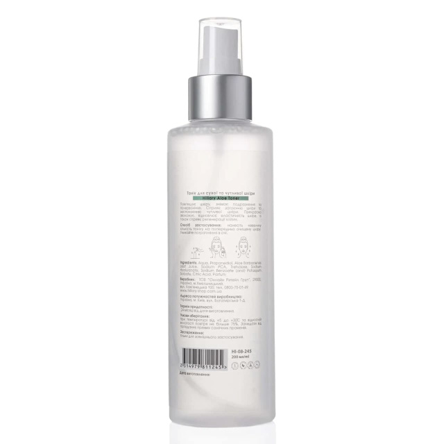 - Тонік для сухої та чутливої шкіри Hillary Aloe Toner, 200 мл;