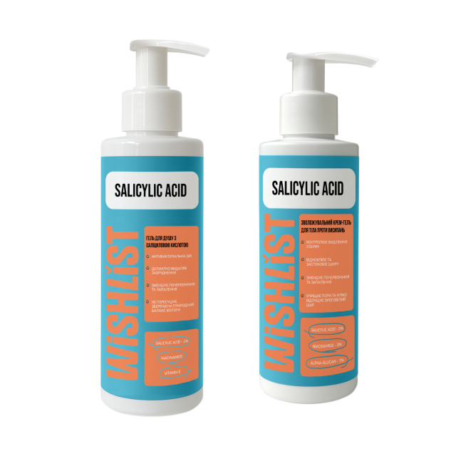 - ГЕЛЬ ДЛЯ ДУШУ З САЛІЦИЛОВОЮ КИСЛОТОЮ WiSHLiST SHOWER GEL SALICYLIC ACID, 200 МЛ мʼяко та ретельно очищує шкіру від забруднень, себуму та залишків SPF, не порушуючи гідроліпідний баланс. Має антибактеріальну дію, зменшує почервоніння та сприяє звуженню пор.