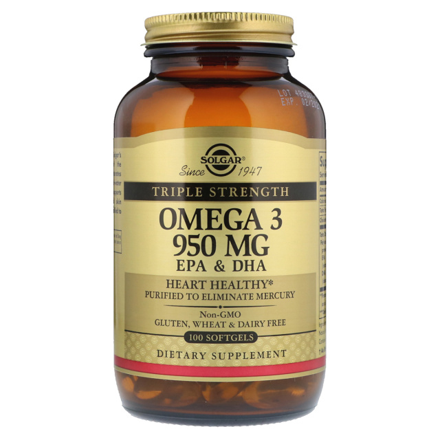 Риб'ячий Жир, Омега 3 (Omega-3 EPA, DHA), 950 мг, Потрійна Сила, Solgar, 100 желатинових капсул, Київ