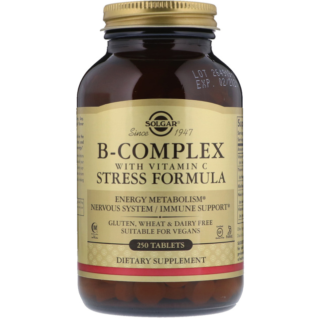 Stress B-Complex забезпечує всі водорозчинні вітаміни групи В, які грають важливу роль в клітинному метаболізмі, плюс 500 мг вітаміну С, який підвищує імунітет.