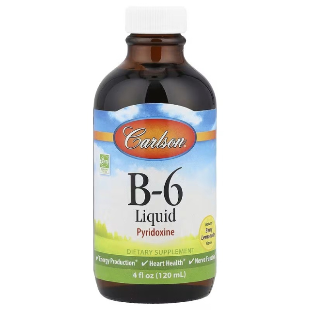 Вітамін B6 у краплях, 100 мг, смак ягідного лимонаду, B-6 Liquid, Carlson, 120 мл, Київ