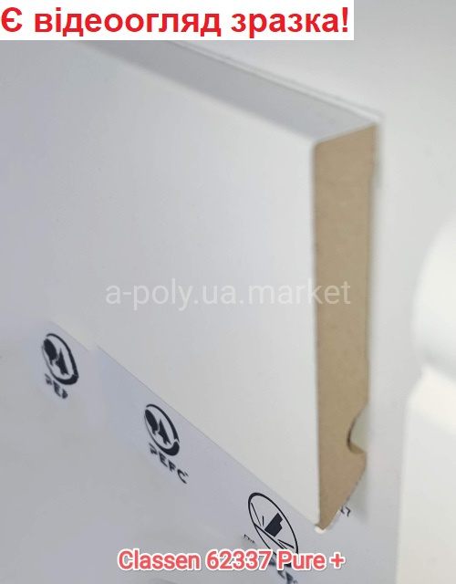 Плінтус МДФ CLASSEN Basic Pure+ Promo Білий 62337 висота 70 мм товщина 12 мм довжина 2400 мм. Продаж плінтуса кратно планці (мінімальне замовлення 5 шт. або 12 м.п.)