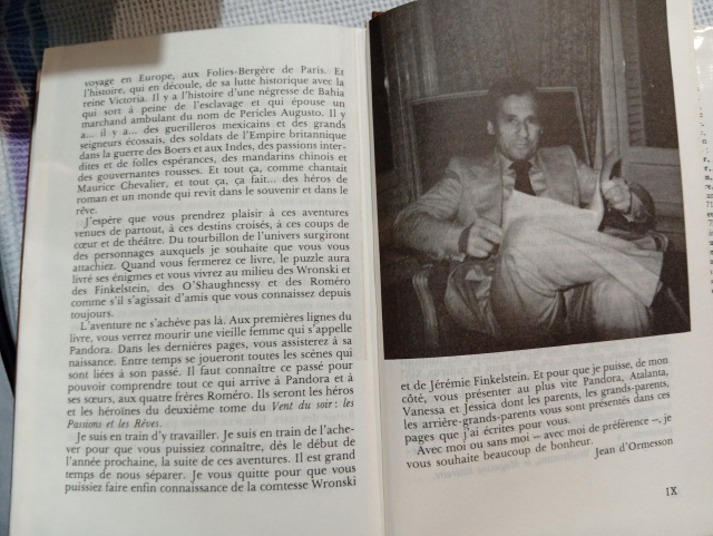 Le Vent du soir est le premier tome d'une trilogie dont le deuxième volume est : Tous les hommes en sont fous et le troisième : Le Bonheur à San Miniato. Ce que raconte Le Vent du soir, c'est une histoire dans l'Histoire. L'action commence vers le milieu du siècle passé ; la scène, le monde : du Brésil à Venise, de la Russie aux Indes, en Afrique du Sud, en Écosse, à Vienne... Les personnages, dont un grand seigneur russe, une négresse de Bahia, un jeune juif polonais, un dictateur d'Amérique du Sud, une Française égarée à Saint-Pétersbourg, Verdi... vivent des passions dévorantes, des aventures en cascades, des coups de tête, des coups de cœur, des coups du sort et même des coups de théâtre.