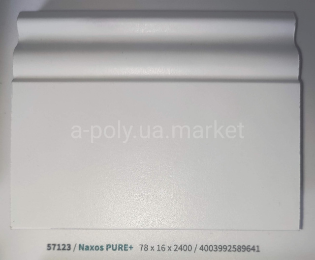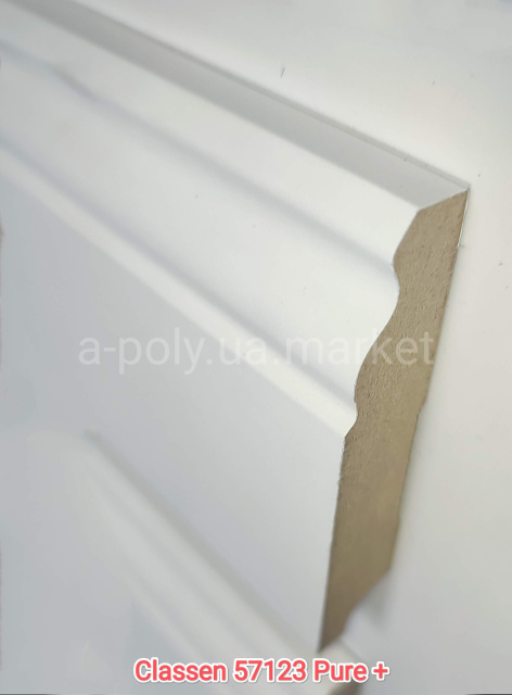 Плінтус МДФ CLASSEN Naxos Pure+ Білий 57123 висота 78 мм товщина 16 мм довжина 2400 мм. Продаж плінтуса кратно планці (мінімальне замовлення 5 шт. або 12 м.п.)