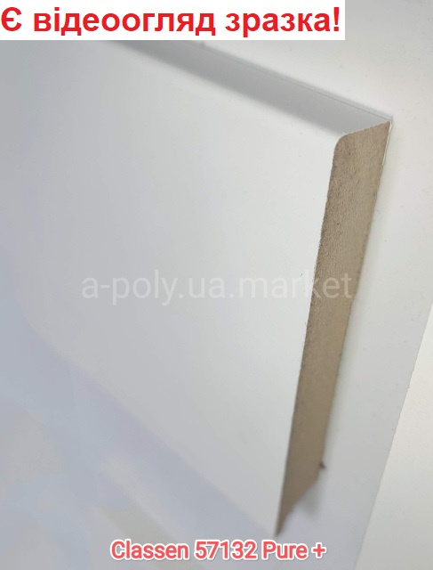 Плінтус МДФ CLASSEN Basic Pure+ Promo Білий 57132 висота 96 мм товщина 14 мм довжина 2400 мм. Продаж плінтуса кратно планці (мінімальне замовлення 5 шт. або 12 м.п.)