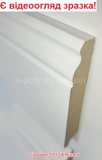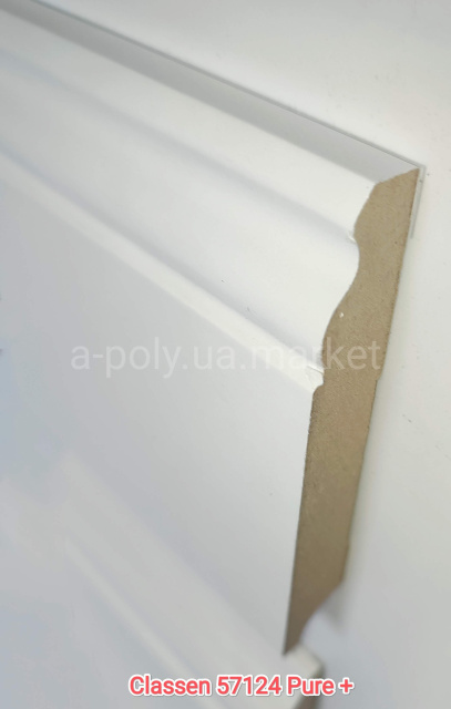 Плінтус МДФ CLASSEN Naxos Pure+ Білий 57124 висота 96 мм товщина 16 мм довжина 2400 мм. Продаж плінтуса кратно планці (мінімальне замовлення 5 шт. або 12 м.п.)