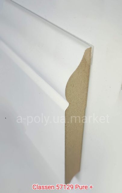 Плінтус МДФ CLASSEN Pax Pure+ Білий 57129 висота 120 мм товщина 16 мм довжина 2400 мм. Продаж плінтуса кратно планці (мінімальне замовлення 5 шт. або 12 м.п.)