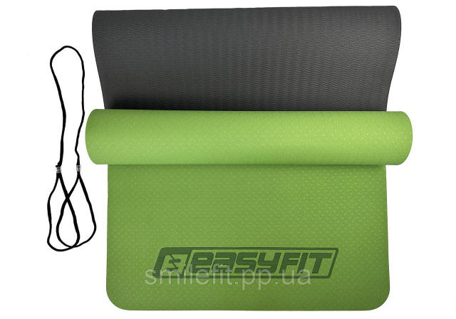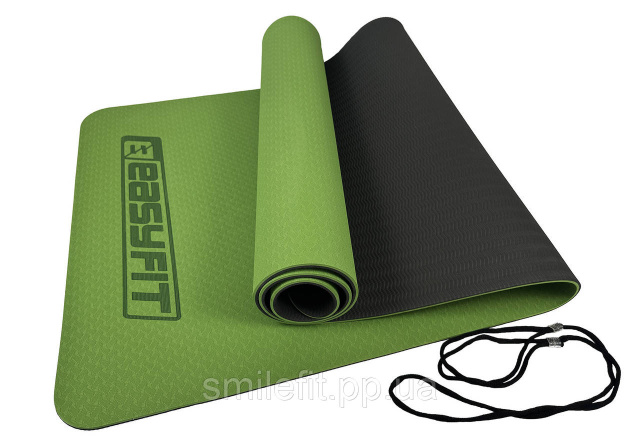 Килимок для йоги та фітнесу EasyFit TPE+TC 6мм двошаровий зелений-чорний, Київ