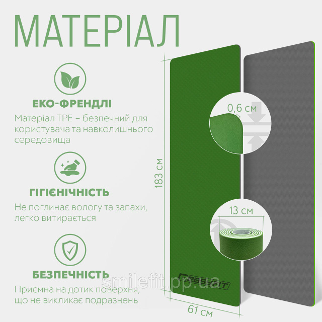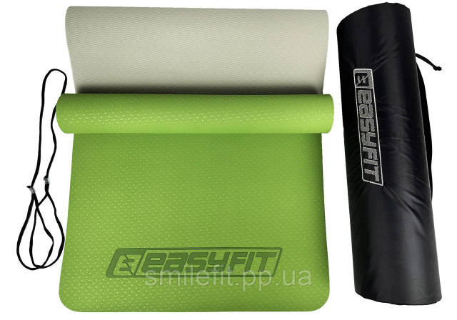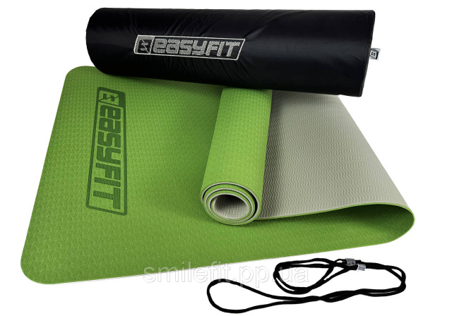 Килимок для йоги та фітнеса EasyFit TPE+TC 6мм двошаровий + Чохол зелений з сірим, Київ