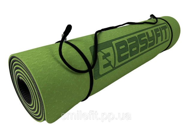 Килимок для йоги та фітнеса EasyFit TPE+TC 6мм двошаровий + Чохол зелений з чорним, Київ