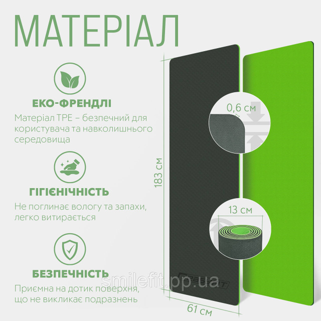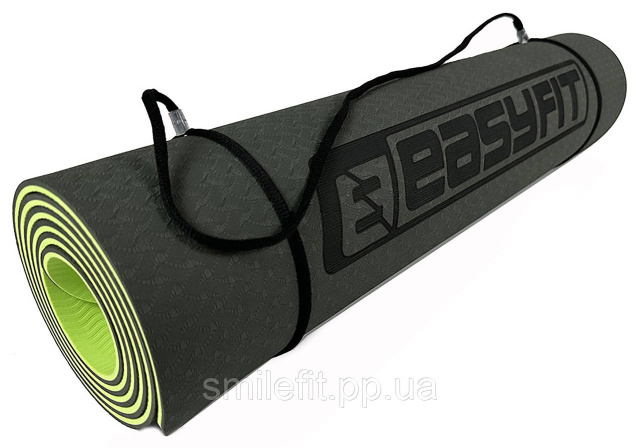 Килимок для йоги та фітнеса EasyFit TPE+TC 6мм двошаровий + Чохол чорний з зеленим, Київ