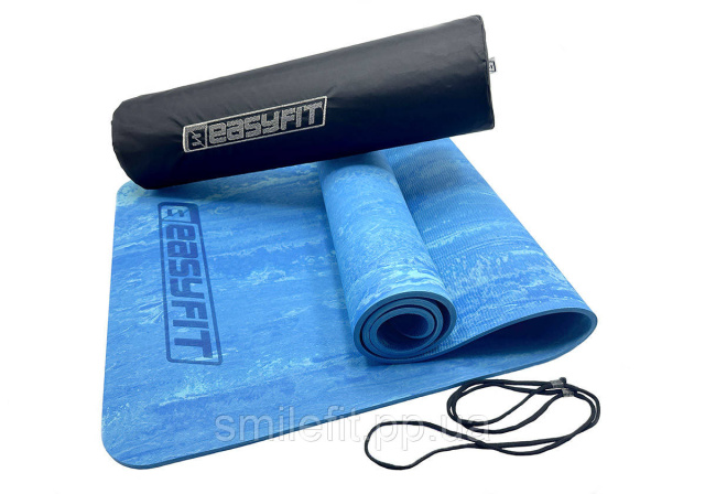 Килимок для йоги та фітнеса EasyFit PER Premium Mat 8 мм синій + Чохол, Київ