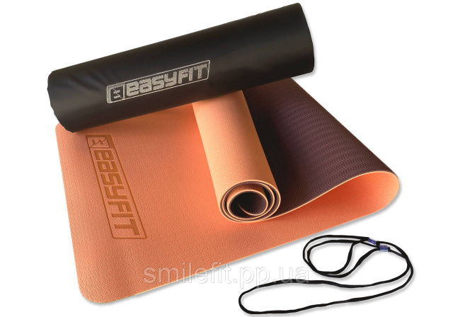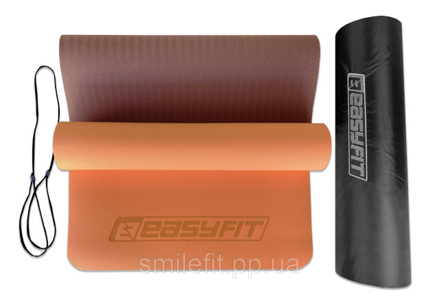 Килимок для йоги та фітнесу EasyFit TPE+TC 6 мм двошаровий + Чохол персиковий-коричневий, Київ