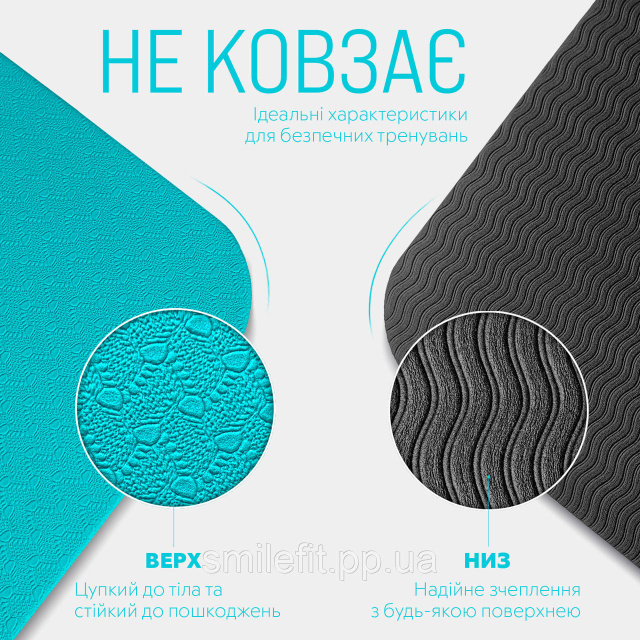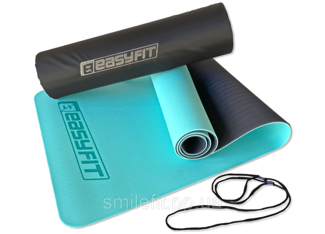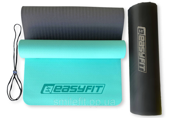 Килимок для йоги та фітнесу EasyFit TPE+TC 6 мм двошаровий + Чохол м'ятний-чорний, Київ