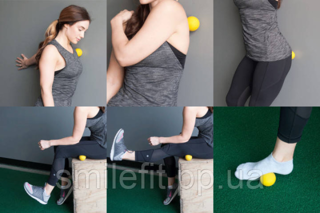 Здійснюючи тиск м'ячиком за допомогою рук, спираючись на стіну або лежачи на підлозі, Ви можете використовувати м'ячик для масажу м'язів шиї, плечей, рук, спини, грудей, попереку, сідниць, ніг, литкових м'язів або в будь-якій точці, де відчуваєте біль.