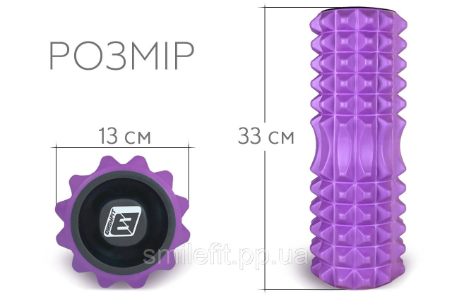 Масажний ролик EasyFit Grid Roller 33 см v.1.2 із заглушками з обох сторін (фіолетовий), Київ