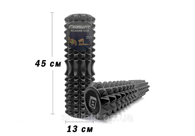 Масажний ролик EasyFit Solid Grid Roller 45 см v.2.2s чорний, Київ