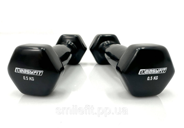 Гантель для фітнесу 0.5 кг EasyFit із вініловим покриттям чорна, Київ