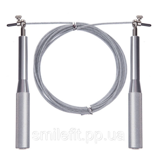 Швидкісна скакалка EasyFit Aluminium зі сталевим тросом та алюмінієвими ручками сіра, Київ