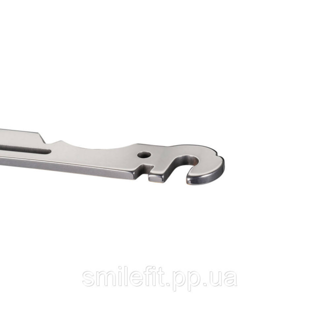 Конструкція зі сталі DIN 1.4116 не покривається іржею та корозійними плямами — достатньо стежити, щоб на поверхні не залишалася волога та забруднення після використання. До інших переваг металу належить його стійкість до механічних пошкоджень, зокрема завдяки гартуванню до 54-56 HRC, тому виріб не гнеться при сильному упорі під час експлуатації.