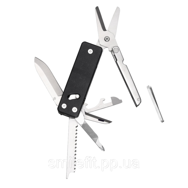 Конструкція також доповнена дрібними інструментами: пилкою із серейторним заточуванням, відкривачкою для пляшок, плоскою та хрестоподібною викрутками, консервним ножем, пилкою для підрівнювання нігтів, лінійкою та шилом з нитковдівачем. Усі інструменти ховаються в мініатюрне руківʼя та утримуються у відкритому положенні за допомогою блокувального механізму, щоб унеможливити випадкове складання під час навантаження.