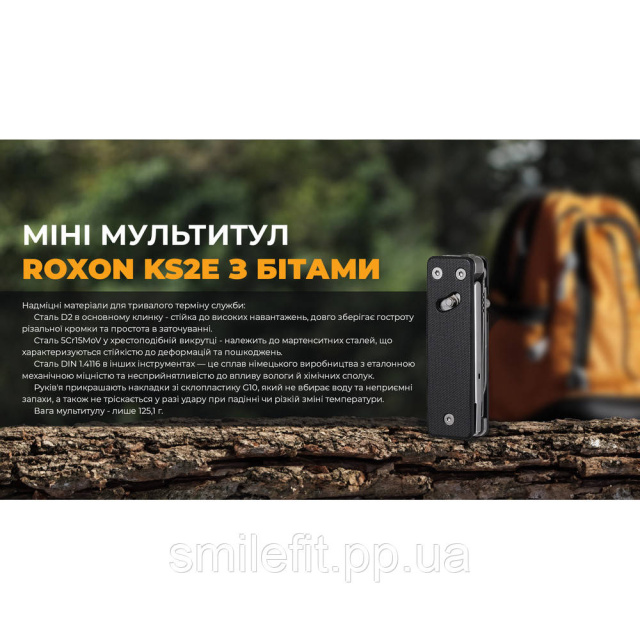 Попри функціональність, товщина Roxon KS2E не перевищує 20 мм, а довжина в закритому вигляді — лише 86.5 мм, тому мультитул можна носити з собою не тільки в сумці, а й у кишені одягу. Для цього передбачена сталева кліпса.