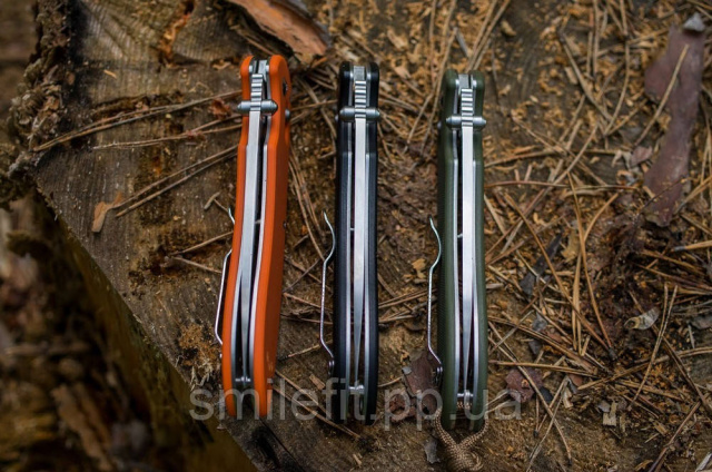 Повна довжина ножа становить 23 см, але щоб носити Ganzo G740 було зручніше, лезо складається всередину рукоятки. Дістати його можна за допомогою шпенька. А щоб ніж не міг відкритися або скластися без відома користувача, у нього вбудований замок Axsis.