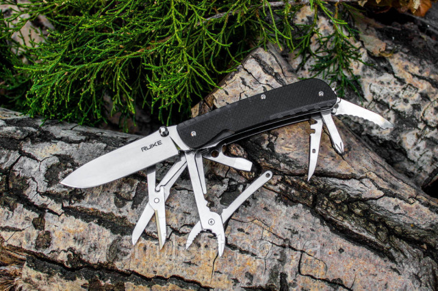 У наборі Ruike LD41 знаходиться аж 21 інструмент, не рахуючи основного широкого клинка. Присутні такі елементи: плоскогубці, ножиці, 2 види кусачок, загин для дротів, кілька прямих викруток і одна хрестова, розгортка, шило, штопор, відкривачка для пляшок, інструмент для зняття ізоляції, гайковий ключ, висуваються кільце для темляка і пінцет. Підібрані тільки корисні інструменти, які зможуть стати у нагоді людям з різними захопленнями.