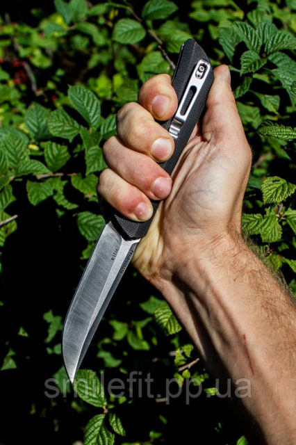 Його клинок виготовлений з нержавіючої сталі марки 14C28N виробництва Sandvik. Цей тип сталі володіє добре збалансованим складом, завдяки чому не схильний до утворення корозії і володіє відмінною зносостійкістю. До того ж, ріжуча кромка довго зберігає гостроту навіть при активній експлуатації.