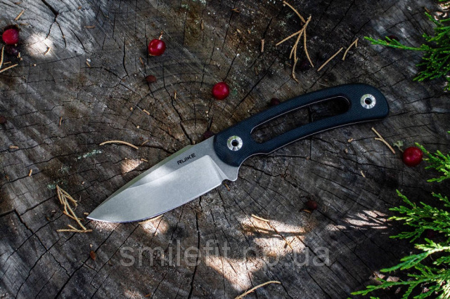 Клинок ножа Ruike F815 виготовляється з хромистої сучасної сталі марки 14С286N Sandvik. Створювався цей метал спеціально для того, щоб використовувати його при виробництві ножових лез. Це означає, що інженери фокусувалися на поліпшення показників твердості, гостроти клинка та стабільності ріжучої кромки. А завдяки високому вмісту хрому, лезо не схильне виникненню корозійних процесів.