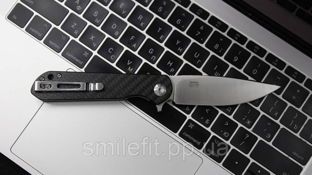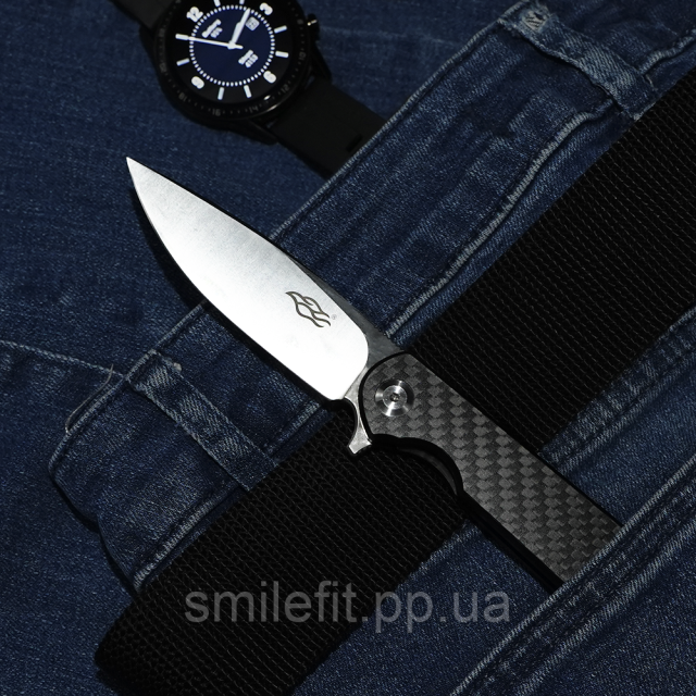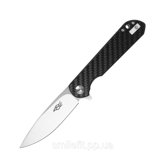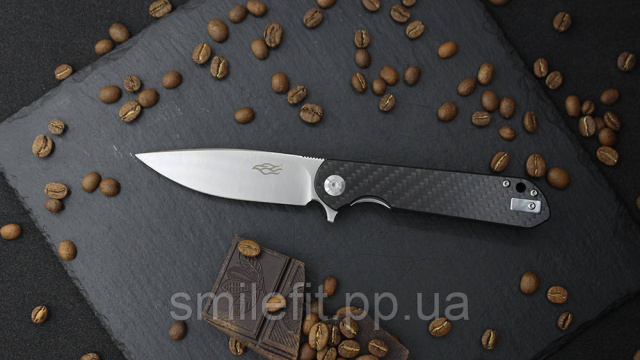 Ніж FH41-CF відразу сподобався всім, як тільки з'явився на ринку. Він універсальний і міцний, виробник продумав кожну дрібницю. Форма клинка класична – drop-point, з приспущеним до вістря обухом. Виготовляється він із високоякісної сталі D2 з твердістю 60 HRC. Тип відкривання ножа - Flipper, який показує високу надійність.
