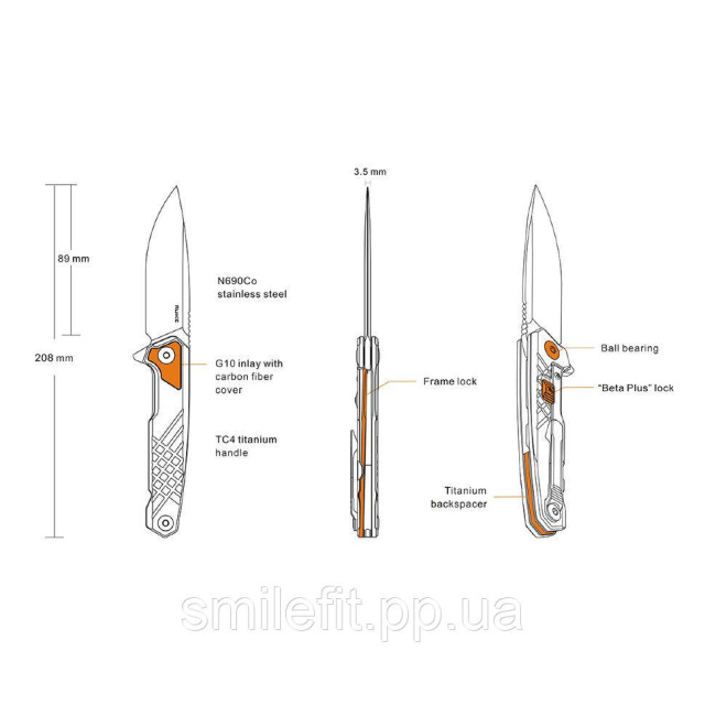 Переважати новинка 110 грам. Кольори рукоятки моделі – сірий і сріблястий. Товщина клинка становить 3,5 міліметра, матеріал рукоятки – TC4 (titanium). Зручний варіант для туризму, подорожей, для виконання побутових робіт вдома. Ніж дуже компактний і легкий, можна брати всюди з собою. Якісний помічник буде завжди під рукою. Гарантія на цю модель – 5 років з моменту придбання.