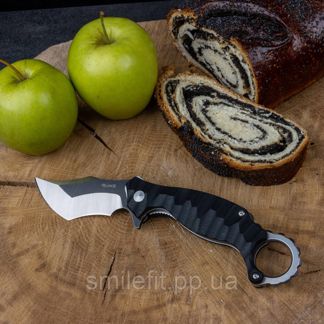 Виріб, про який йде мова, було розроблено для користувачів, що захоплюються тактичними ножами. Зручне заднє кільце, яким забезпечена модель, не тільки гарантує міцний захоплення і утримання, а також забезпечує велику варіативність для ударів і захисту. Словом, це ефективний добротний ніж, який, крім іншого, є першим складним керамбітом фірми Ruike. Надійне пристосування для справжніх цінителів вишуканих і продуманих інструментів.