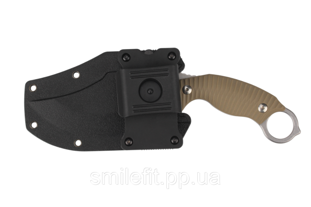 Рукоять виготовлена з склотекстоліти G10, який являє собою суміш склотканини і епоксидних смол. Це досить міцний і стійкий до пошкоджень матеріал, добре переносить вологу, відмінно піддається фарбуванню. До того ж, G10 стійкий до впливів високих температур. Рукоять з таким матеріалом у складі буде мати довгий термін служби і добре протистояти впливу різних факторів.