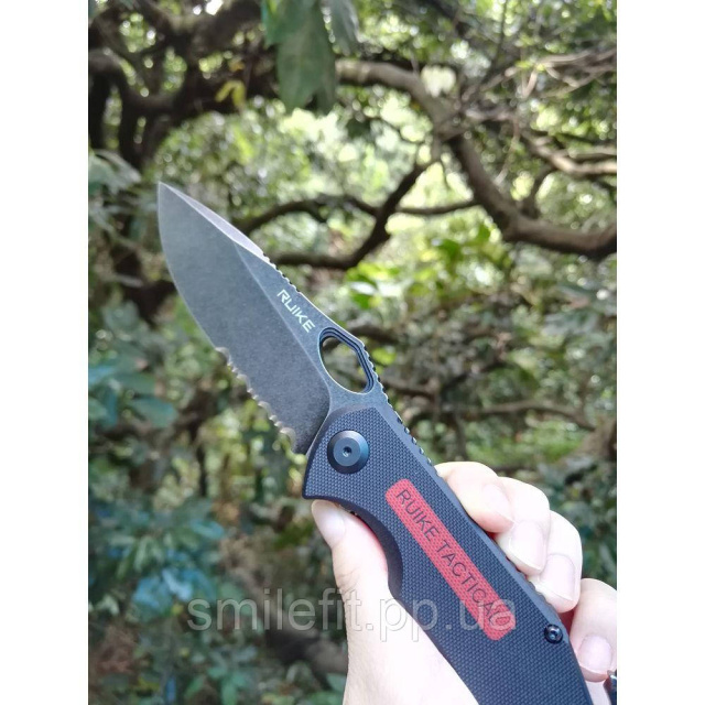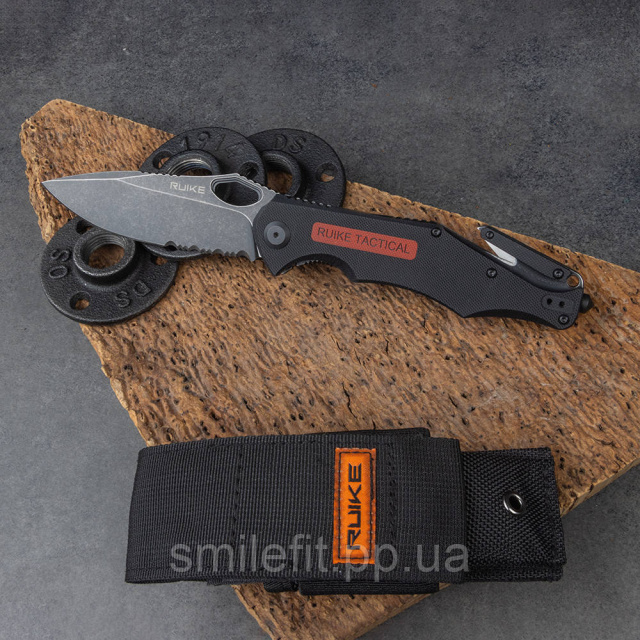 Модель Ruike M195 являє собою перший тактичний ніж виробника. Багатофункціональний складаний ніж, який характеризується кількома особливостями. По-перше, це симетричний клинок різновиди drop point, зроблений із сталі марки D2 твердістю порядку 60-61 одиниць по Роквеллу. Метод обробки леза – галтування. D2 це високовуглецева высокохромистая інструментальна сталь, забезпечує утримання кромки і твердість, а також більш стійка до корозії, ніж інші високовуглецеві сталі.