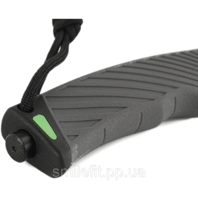 Оскільки ніж Ganzo G8012V2-GY створювався спеціально для потреб мандрівників-екстремалів, виробник оснастив його ергономічною рукояттю, яка легко поміщається в долоню будь-якого розміру. Виїмка для упору під палець робить хват більш надійним і дозволяє утримувати інструмент навіть у вологій руці. Матеріал рукояті — ABS-пластик, який цінується в ножовій промисловості за ударостійкість і несприйнятливість до впливу кислот, бензину та інших хімічних речовин без втрати властивостей і кольору.