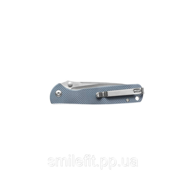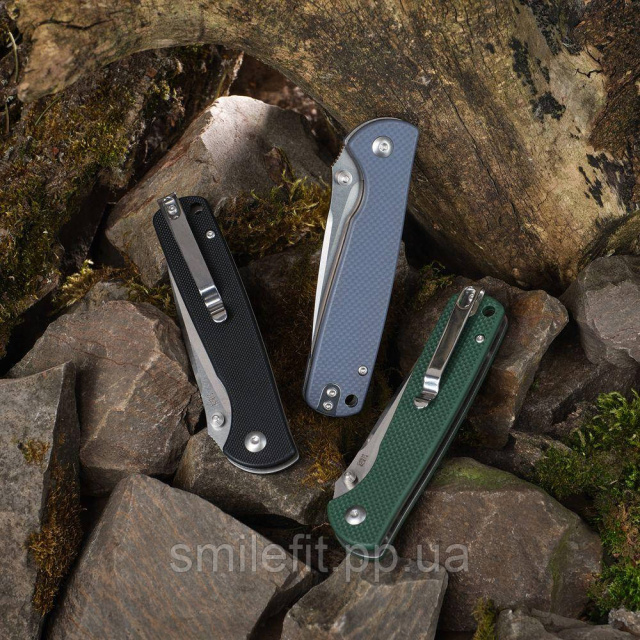 Виробник потурбувався про ергономіку ножа і доповнив його рукоять склотекстолітовими (G10) накладками сірого кольору. Вони кріпляться на конструкції за допомогою пари гвинтів і мають шорстку поверхню, щоб модель не вислизала з руки під час використання. Довжина рукояті становить 112 міліметрів і підходить власникам долоні будь-якого розміру.