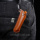 Ніж фіксується у чохлі за допомогою металевої кнопки; яка надійно утримує інструмент усередині та не дає йому випасти під час транспортування. Розміри чохла становлять 142.5 х 60.9 х 8.7 міліметрів. У бічній частині аксесуара є наскрізний отвір. У нього можна просмикнути темляк або кільце з карабіном; щоб пристебнути чохол до пояса або лямки рюкзака. Вага шкіряного чохла складає 13.4 грами.